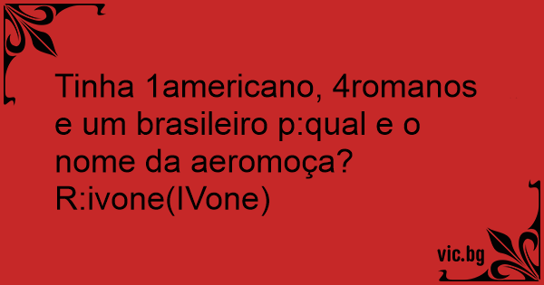 Tinha 1americano, 4romanos e um brasileiro p:qual e o nome da aeromoça?