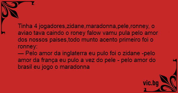 Tinha 4 jogadores,zidane,maradonna,pele,ronney, o aviao tava caindo o roney falow vamu pula pelo amor dos nossos paises,todo munto acento primeiro foi o ronney: