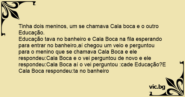 Tinha dois meninos, um se chamava Cala boca e o outro Educação.