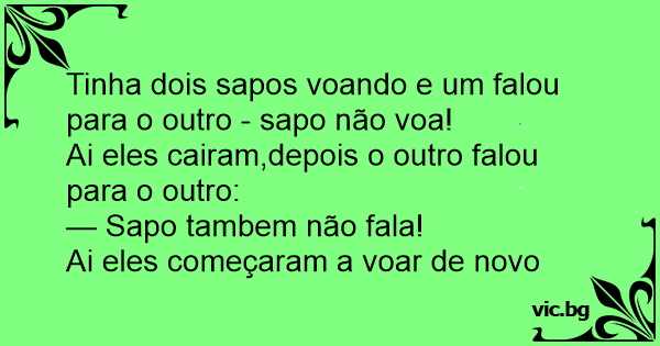 Tinha dois sapos voando e um falou para o outro - sapo não voa!