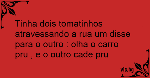 Tinha dois tomatinhos atravessando a rua um disse para o outro : olha o carro pru , e o outro cade pru (morreu )