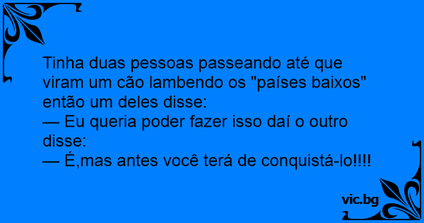 Tinha duas pessoas passeando até que viram um cão lambendo os "países baixos" então um deles disse: