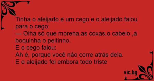 Tinha o aleijado e um cego e o aleijado falou para o cego: