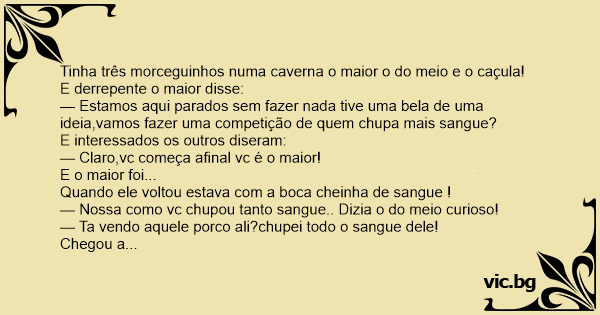— Nossa como vc chupou tanto sangue?Disse o caçula -Ta vendo aquele boi ali?chupei todo o sangue dele!