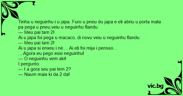 Tinha u neguinhu i u japa. Furo u pneu du japa e eli abriu u porta mala pa pega u pneu,veiu u neguinhu flandu: