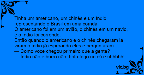 Então quando o americano e o chinês chegaram lá viram o índio já esperando eles e perguntaram: