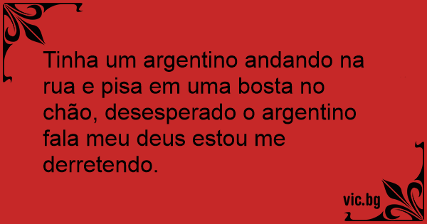 Tinha um argentino andando na rua e pisa em uma bosta no chão, desesperado o argentino fala meu deus estou me derretendo.