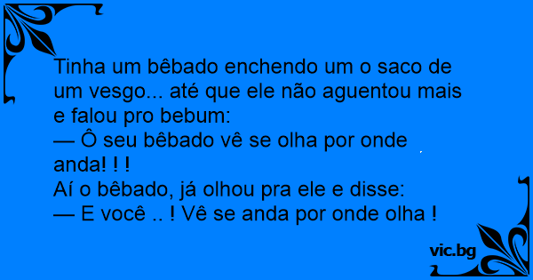 Tinha um bêbado enchendo um o saco de um vesgo... até que ele não aguentou mais e falou pro bebum: