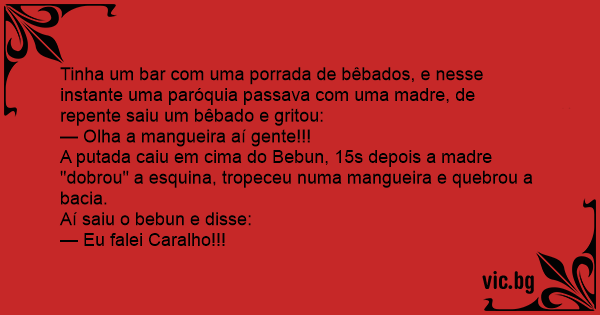 Tinha um bar com uma porrada de bêbados, e nesse instante uma paróquia passava com uma madre, de repente saiu um bêbado e gritou: