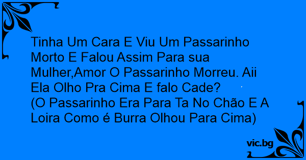 Tinha Um Cara E Viu Um Passarinho Morto E Falou Assim Para sua Mulher,Amor O Passarinho Morreu. Aii Ela Olho Pra Cima E falo Cade?