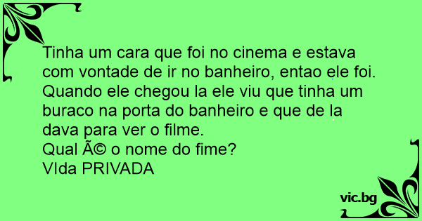 Tinha um cara que foi no cinema e estava com vontade de ir no banheiro, entao ele foi. Quando ele chegou la ele viu que tinha um buraco na porta do banheiro e que de la dava para ver o filme.