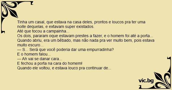 Tinha um casal, que estava na casa deles, prontos e loucos pra ter uma noite dequelas, e extavam super existados.