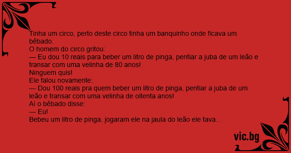 Bebeu um litro de pinga, jogaram ele na jaula do leão ele tava demorando aí ele saiu e disse:
