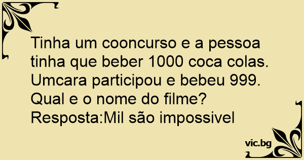 Tinha um cooncurso e a pessoa tinha que beber 1000 coca colas. Umcara participou e bebeu 999.