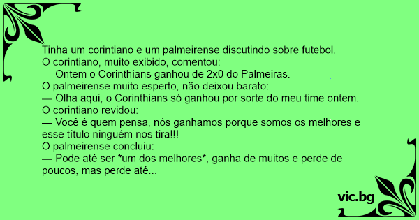 — Ontem o Corinthians ganhou de 2x0 do Palmeiras.