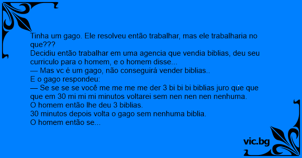 Então uma vez foram entrevistar o gago, para saber como ele conseguia vender tantas biblias...