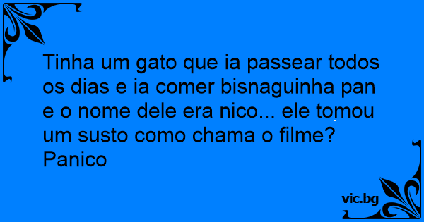 Tinha um gato que ia passear todos os dias e ia comer bisnaguinha pan e o nome dele era nico... ele tomou um susto como chama o filme?