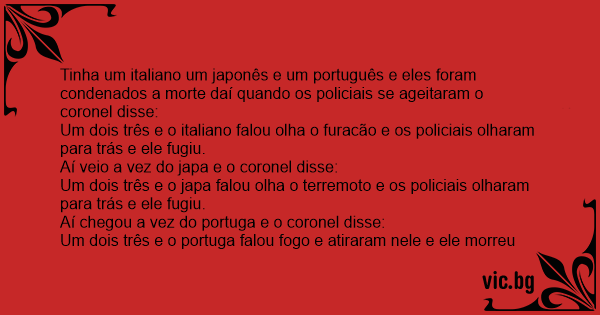 Tinha um italiano um japonês e um português e eles foram condenados a morte daí quando os policiais se ageitaram o coronel disse: