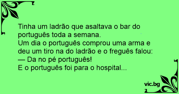 Um dia o português comprou uma arma e deu um tiro na do ladrão e o freguês falou: