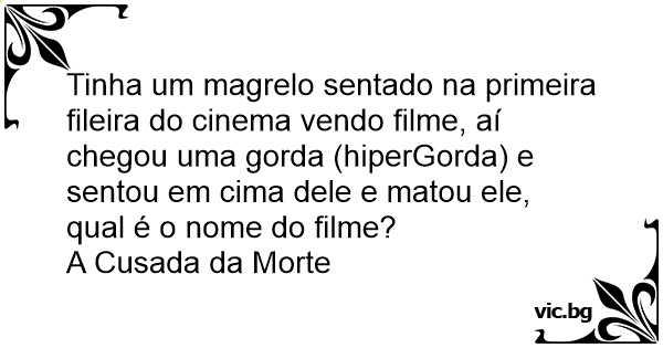 Tinha um magrelo sentado na primeira fileira do cinema vendo filme, aí chegou uma gorda (hiperGorda) e sentou em cima dele e matou ele, qual é o nome do filme?
