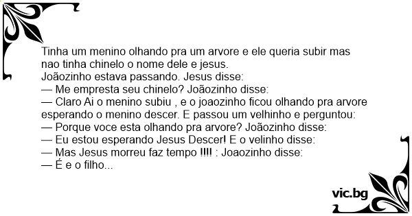 — Mas Jesus morreu faz tempo !!!! : Joaozinho disse: