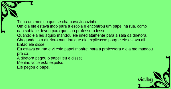 Ele pegou o papel e estava indo embora quando um policial o parou e perguntou o porque dele esta fora da escola; Entao Joaozinho disse: