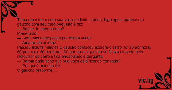 Tinha um minero com sua vаса pedindo carona, logo após aparece um gaucho com seu caro pequeno é diz: