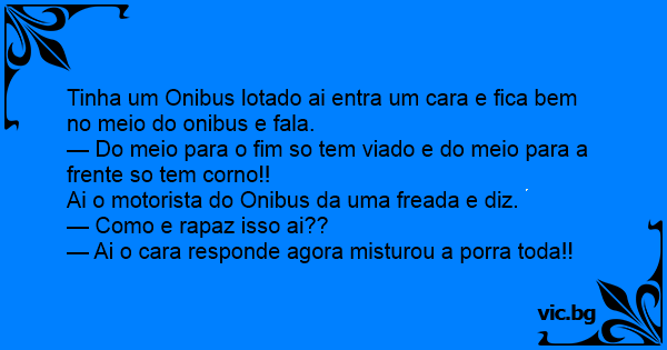 — Do meio para o fim so tem viаdо e do meio para a frente so tem соrnо!!