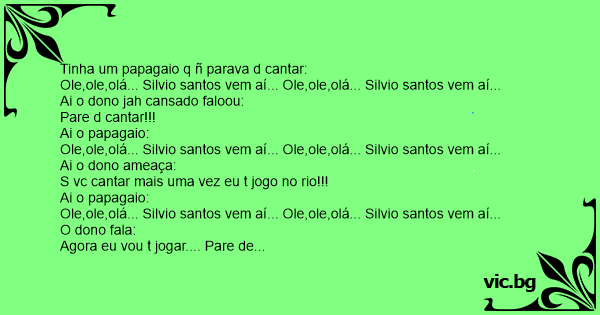 Tinha um papagaio q ñ parava d cantar:
