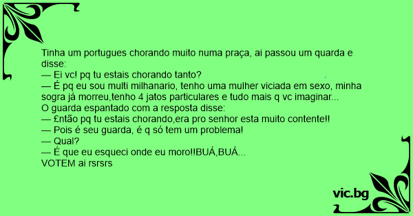 Tinha um portugues chorando muito numa praça, ai passou um quarda e disse: