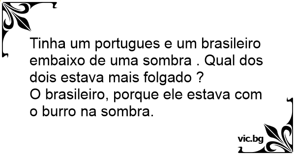 Tinha um portugues e um brasileiro embaixo de uma sombra . Qual dos dois estava mais folgado ?