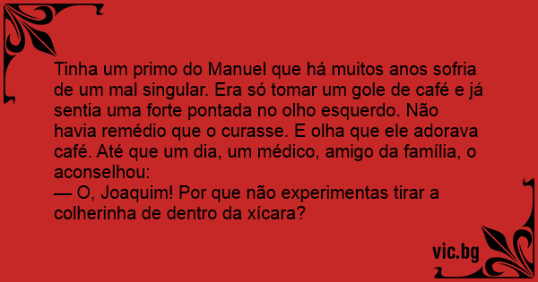 — O, Joaquim! Por que não experimentas tirar a colherinha de dentro da xícara?