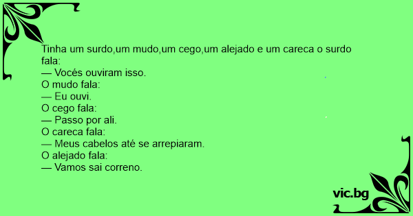 Tinha um surdo,um mudo,um cego,um alejado e um careca o surdo fala: