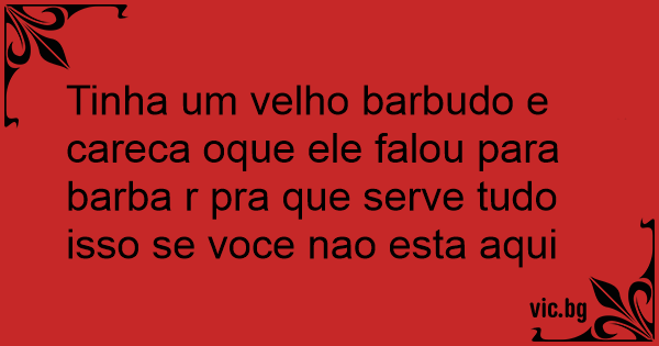 Tinha um velho barbudo e careca oque ele falou para barba r pra que serve tudo isso se voce nao esta aqui