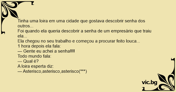 Tinha uma loira em uma cidade que gostava descobrir senha dos outros...