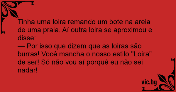 — Por isso que dizem que as loiras são burras! Você mancha o nosso estilo "Loira" de ser! Só não vou aí porquê eu não sei nadar!