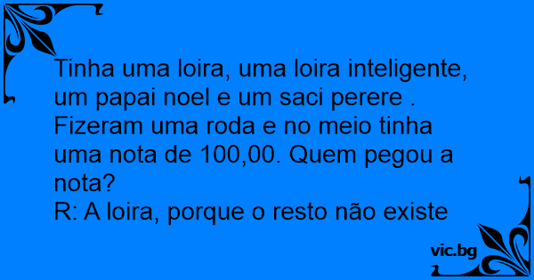 Tinha uma loira, uma loira inteligente, um papai noel e um saci perere . Fizeram uma roda e no meio tinha uma nota de 100,00. Quem pegou a nota?
