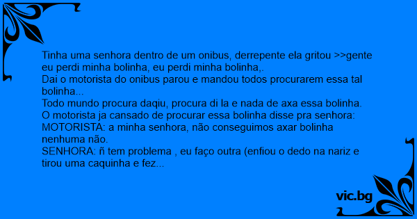 Tinha uma senhora dentro de um onibus, derrepente ela gritou >>gente eu perdi minha bolinha, eu perdi minha bolinha,.