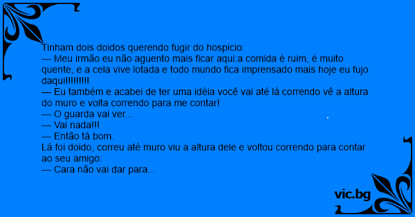 Lá foi doido, correu até muro viu a altura dele e voltou correndo para contar ao seu amigo: