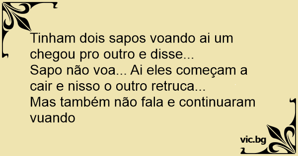 Tinham dois sapos voando ai um chegou pro outro e disse...