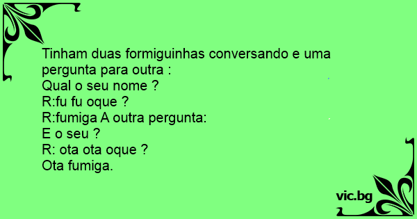 Tinham duas formiguinhas conversando e uma pergunta para outra :