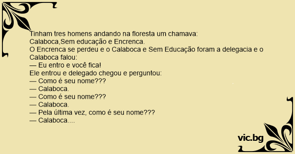 O Encrenca se perdeu e o Calaboca e Sem Educação foram a delegacia e o Calaboca falou: