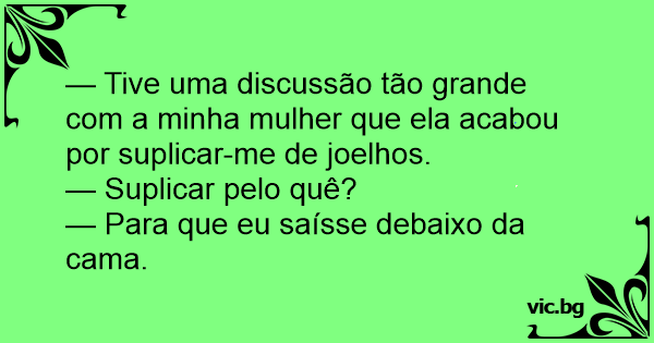 — Tive uma discussão tão grande com a minha mulher que ela acabou por suplicar-me de joelhos.