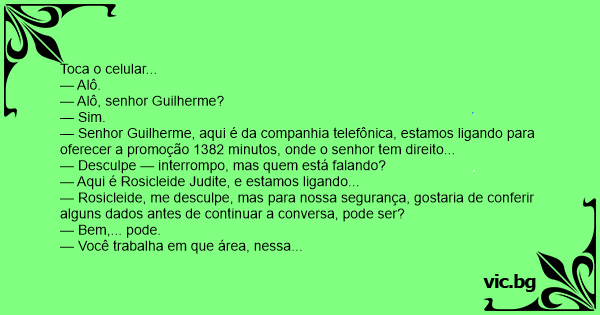 — Senhor Guilherme, aqui é da companhia telefônica, estamos ligando para oferecer a promoção 1382 minutos, onde o senhor tem direito...