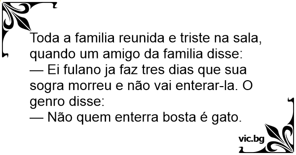 — Ei fulano ja faz tres dias que sua sogra morreu e não vai enterar-la. O genro disse: