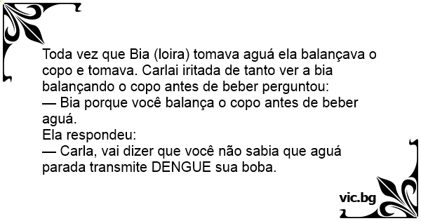 — Carla, vai dizer que você não sabia que aguá parada transmite DENGUE sua boba.