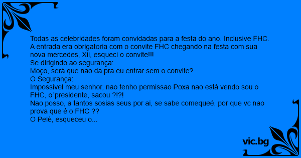 A entrada era obrigatoria com o convite FHC chegando na festa com sua nova mercedes, Xii, esqueci o convite!!!