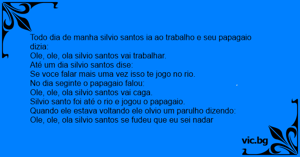 Todo dia de manha silvio santos ia ao trabalho e seu papagaio dizia:
