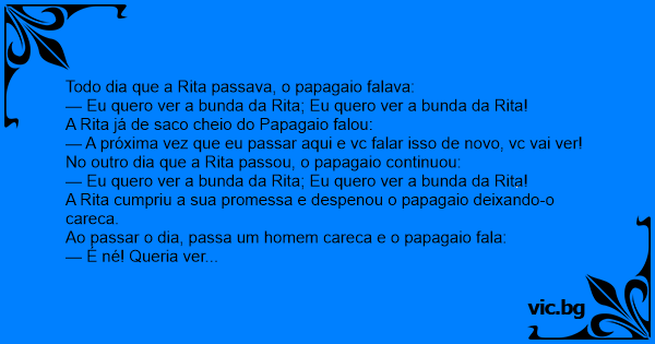 Todo dia que a Rita passava, o papagaio falava:
