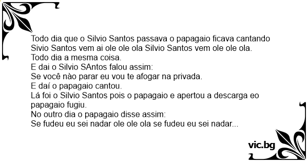 Todo dia que o Silvio Santos passava o papagaio ficava cantando Sivio Santos vem ai ole ole ola Silvio Santos vem ole ole ola.